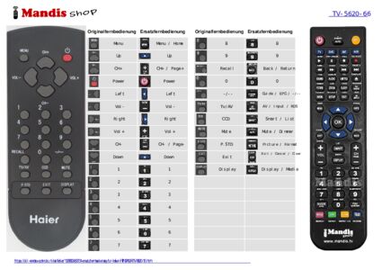 Diese Fernbedienung ersetzt Ihre HTN19R12R (TV-5620-16) in vollem Umfang und bietet alle Funktionen des Originals.