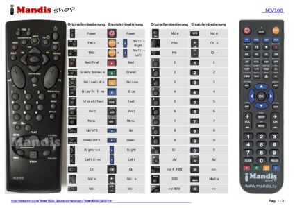 Ein Dokument ist enthalten, um die Verwendung der neuen Fernbedienung zu erleichtern, indem es die Tastenbelegung zeigt.