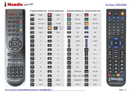 Ein Dokument ist enthalten, um die Verwendung der neuen Fernbedienung zu erleichtern, indem es die Tastenbelegung zeigt.