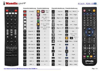 Ein Dokument ist enthalten, um die Verwendung der neuen Fernbedienung zu erleichtern, indem es die Tastenbelegung zeigt.