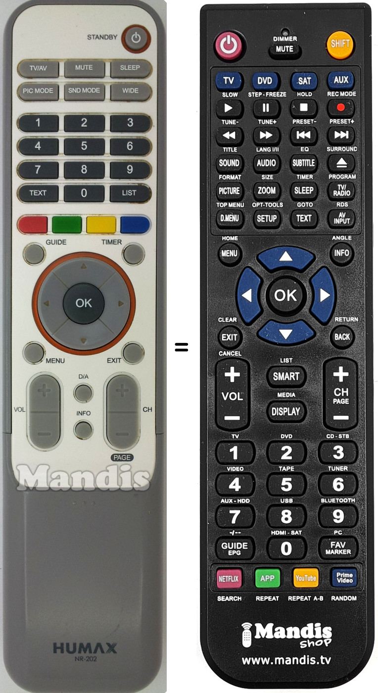 Fernbedienung Ersatzteil NR-202 zur Steuerung der TV-Geräte der Marke Humax.