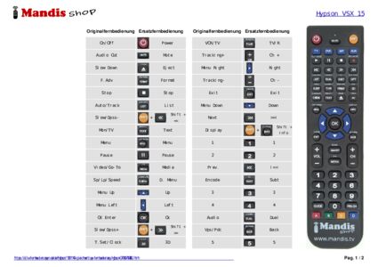 Im Folgenden zeigen wir Ihnen die Zuordnung jedes einzelnen Knopfes der Originalfernbedienung zu der Taste, die dieselbe Funktion auf der Ersatzfernbedienung ausführt. In einigen Fällen müssen Sie möglicherweise die UMSCHALT-Taste drücken, bevor Sie eine andere Taste drücken, um bestimmte Aktionen auszuführen. Diese zusätzlichen Funktionen werden oft wenig genutzt und dienen dazu, das Verständnis der Ersatzfernbedienung zu erleichtern oder weil die Originalfernbedienung mehr Tasten hat als das entsprechende Modell.