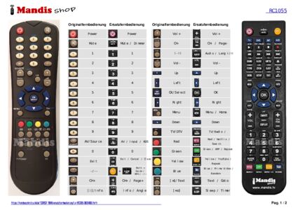 Diese Fernbedienung ersetzt Ihre RC1055 (30054683) in vollem Umfang und bietet alle Funktionen des Originals.