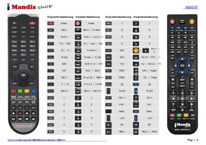 Diese Fernbedienung ersetzt Ihre HD450T in vollem Umfang und bietet alle Funktionen des Originals.