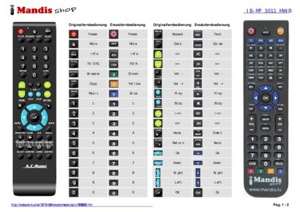 Ein Dokument ist enthalten, um die Verwendung der neuen Fernbedienung zu erleichtern, indem es die Tastenbelegung zeigt.