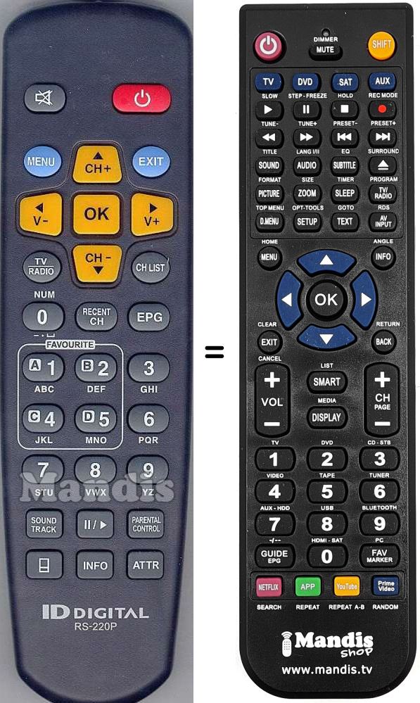 Die Fernbedienung ersetzt das Original RS 220P in der Gesamtheit seiner Funktionen.