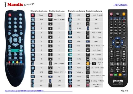 Ein Dokument ist enthalten, um die Verwendung der neuen Fernbedienung zu erleichtern, indem es die Tastenbelegung zeigt.