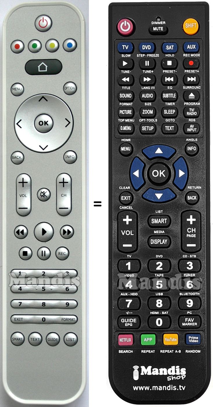 Wir bieten dir eine Ersatzfernbedienung an, die deine Originalfernbedienung in all ihren Funktionen vollständig ersetzt. Es handelt sich nicht um eine Universalfernbedienung, sondern um eine exakte Kopie mit identischen Tasten und Funktionen.