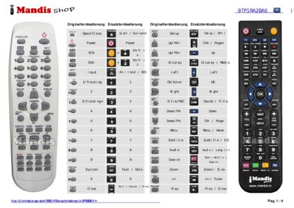 Ein Dokument ist enthalten, um die Verwendung der neuen Fernbedienung zu erleichtern, indem es die Tastenbelegung zeigt.