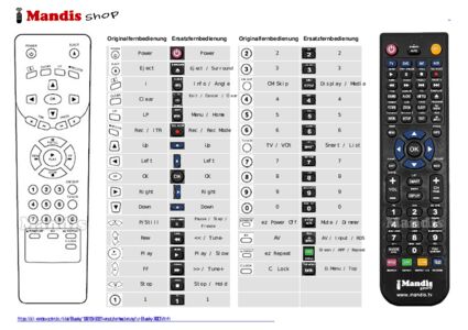 Ein Dokument ist enthalten, um die Verwendung der neuen Fernbedienung zu erleichtern, indem es die Tastenbelegung zeigt.