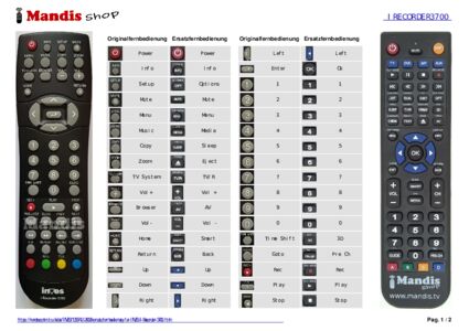 Diese Fernbedienung ersetzt Ihre I-Recorder 3700 in vollem Umfang und bietet alle Funktionen des Originals.