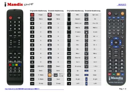 Ein Dokument ist enthalten, um die Verwendung der neuen Fernbedienung zu erleichtern, indem es die Tastenbelegung zeigt.