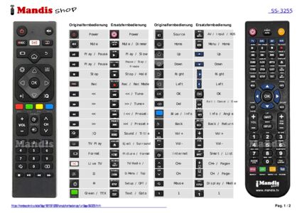 Ein Dokument ist enthalten, um die Verwendung der neuen Fernbedienung zu erleichtern, indem es die Tastenbelegung zeigt.
