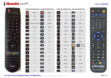 Diese Fernbedienung ersetzt Ihre B325SB (Inter004) in vollem Umfang und bietet alle Funktionen des Originals.
