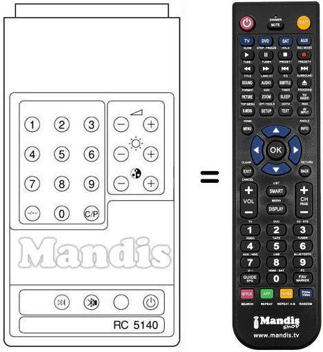 Die Fernbedienung ersetzt das Original RC5140 in der Gesamtheit seiner Funktionen.