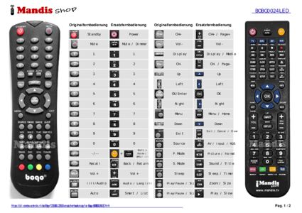 Ein Dokument ist enthalten, um die Verwendung der neuen Fernbedienung zu erleichtern, indem es die Tastenbelegung zeigt.