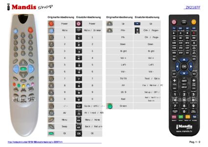 Ein Dokument ist enthalten, um die Verwendung der neuen Fernbedienung zu erleichtern, indem es die Tastenbelegung zeigt.