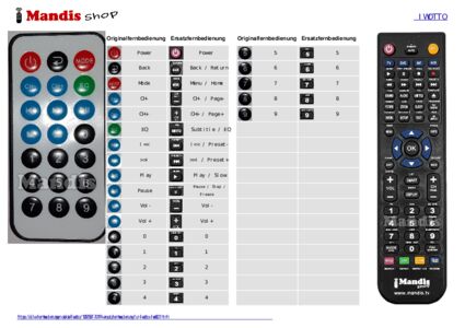 Ein Dokument ist enthalten, um die Verwendung der neuen Fernbedienung zu erleichtern, indem es die Tastenbelegung zeigt.