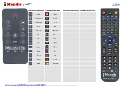 Diese Fernbedienung ersetzt Ihre SB150 (105000690) in vollem Umfang und bietet alle Funktionen des Originals.