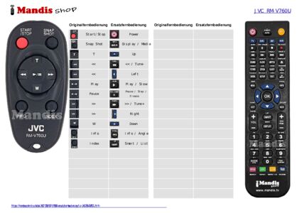 Ein Dokument ist enthalten, um die Verwendung der neuen Fernbedienung zu erleichtern, indem es die Tastenbelegung zeigt.