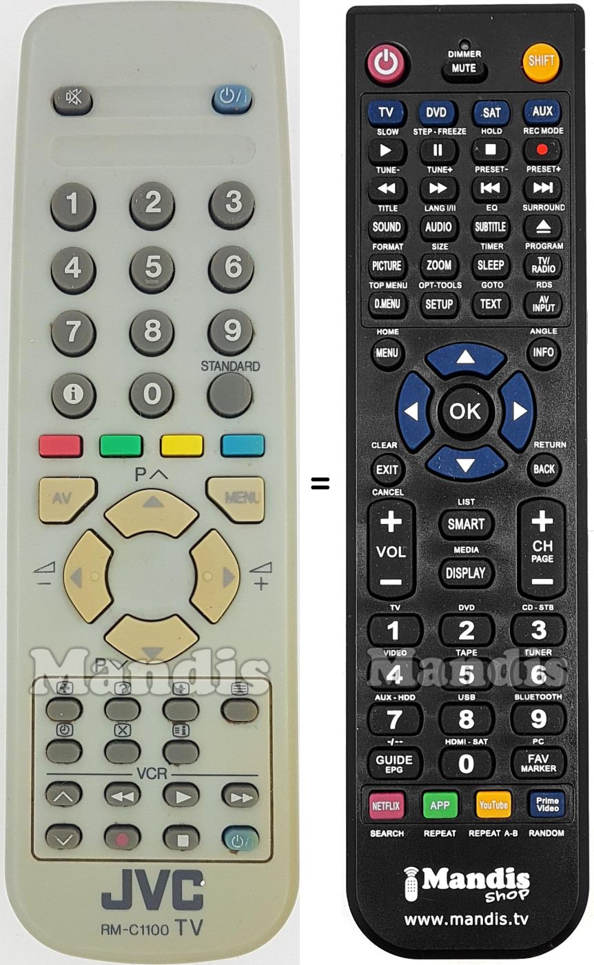 Diese Fernbedienung ersetzt Ihre RM-C1100 in vollem Umfang und bietet alle Funktionen des Originals.