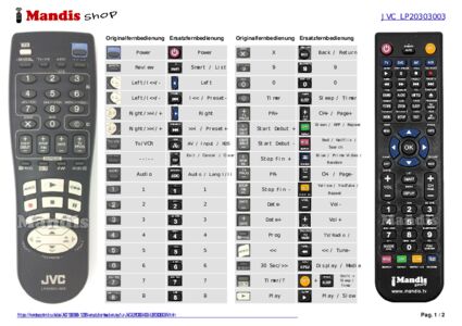 Ein Dokument ist enthalten, um die Verwendung der neuen Fernbedienung zu erleichtern, indem es die Tastenbelegung zeigt.