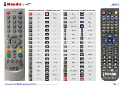 Ein Dokument ist enthalten, um die Verwendung der neuen Fernbedienung zu erleichtern, indem es die Tastenbelegung zeigt.