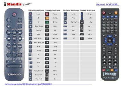 Diese Fernbedienung ersetzt Ihre RC-M820DAB (RC-M817DAB) in vollem Umfang und bietet alle Funktionen des Originals.