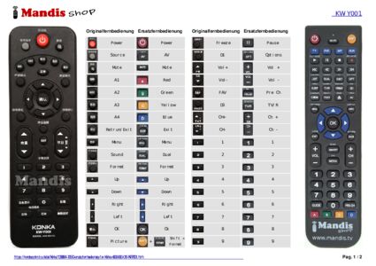 Ein Dokument ist enthalten, um die Verwendung der neuen Fernbedienung zu erleichtern, indem es die Tastenbelegung zeigt.