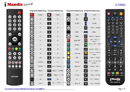 Ein Dokument ist enthalten, um die Verwendung der neuen Fernbedienung zu erleichtern, indem es die Tastenbelegung zeigt.