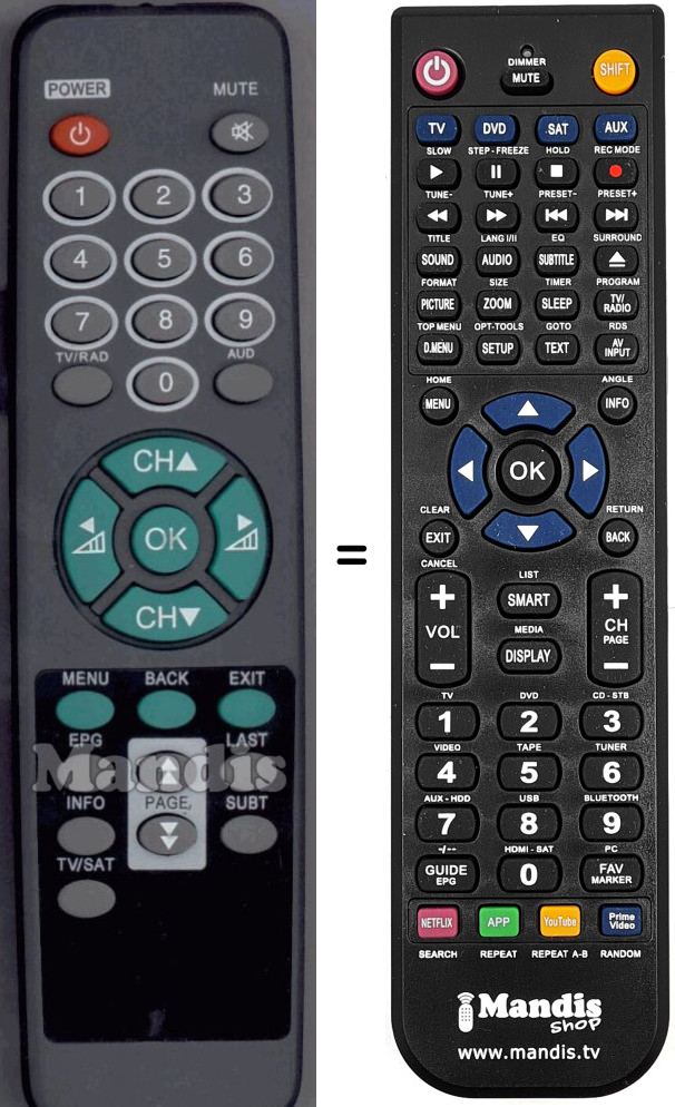 Es handelt sich jedoch nicht um eine Universalfernbedienung sondern um eine Fernbedienung die das Original ersetzt.