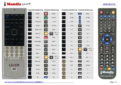 Ein Dokument ist enthalten, um die Verwendung der neuen Fernbedienung zu erleichtern, indem es die Tastenbelegung zeigt.