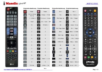 Ein Dokument ist enthalten, um die Verwendung der neuen Fernbedienung zu erleichtern, indem es die Tastenbelegung zeigt.
