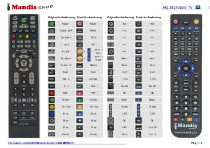Ein Dokument ist enthalten, um die Verwendung der neuen Fernbedienung zu erleichtern, indem es die Tastenbelegung zeigt.