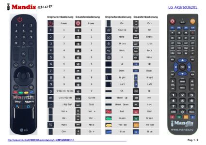 Ein Dokument ist enthalten, um die Verwendung der neuen Fernbedienung zu erleichtern, indem es die Tastenbelegung zeigt.