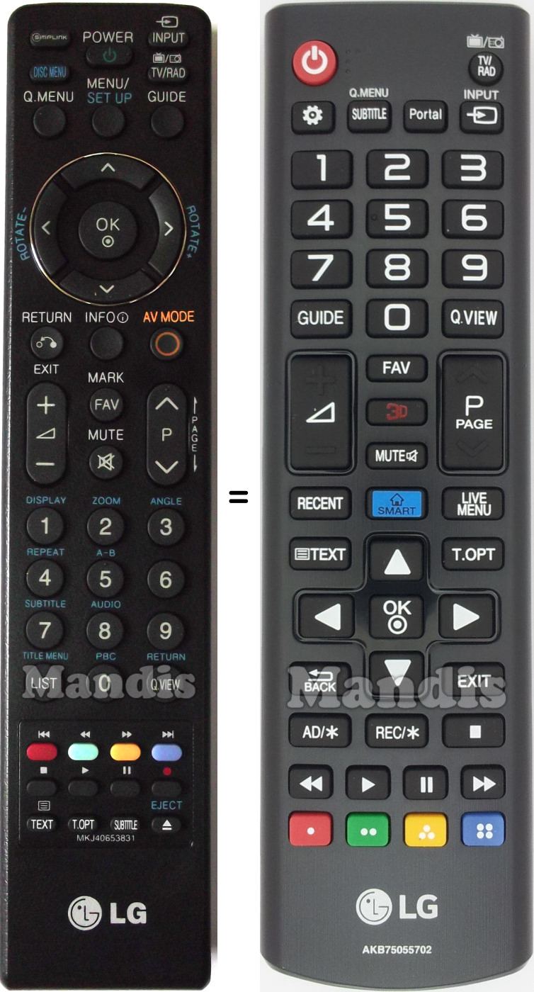 Gleichwertige Fernbedienungen, die über alle Funktionen der Fernbedienung LG AKB75055702 verfügen: