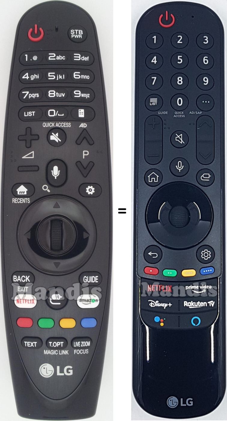 Gleichwertige Fernbedienungen, die über alle Funktionen der Fernbedienung LG MR21GA (AKB76039701) verfügen: