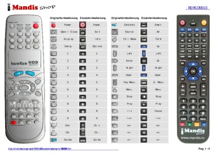 Ein Dokument ist enthalten, um die Verwendung der neuen Fernbedienung zu erleichtern, indem es die Tastenbelegung zeigt.