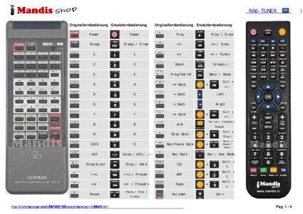Ein Dokument ist enthalten, um die Verwendung der neuen Fernbedienung zu erleichtern, indem es die Tastenbelegung zeigt.