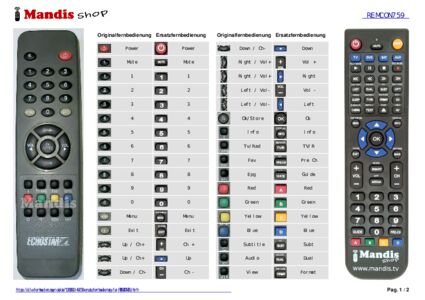 Ein Dokument ist enthalten, um die Verwendung der neuen Fernbedienung zu erleichtern, indem es die Tastenbelegung zeigt.