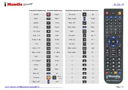 Ein Dokument ist enthalten, um die Verwendung der neuen Fernbedienung zu erleichtern, indem es die Tastenbelegung zeigt.