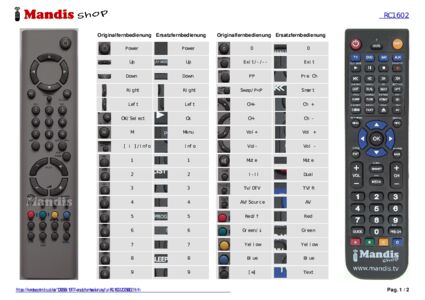 Diese Fernbedienung ersetzt Ihre RC1602 (20256002) in vollem Umfang und bietet alle Funktionen des Originals.