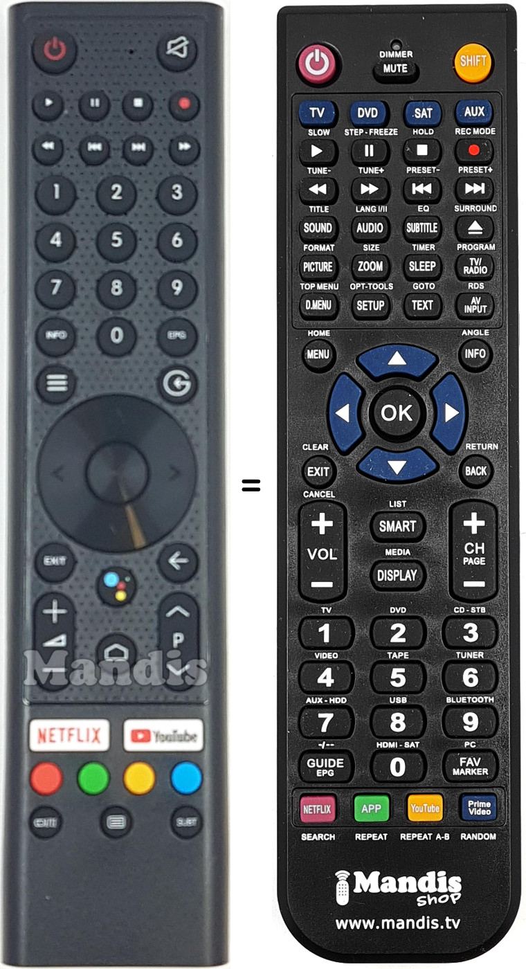 Fernbedienung, die das Original und die Gesamtheit seiner Funktionen, vollständig ersetzt.