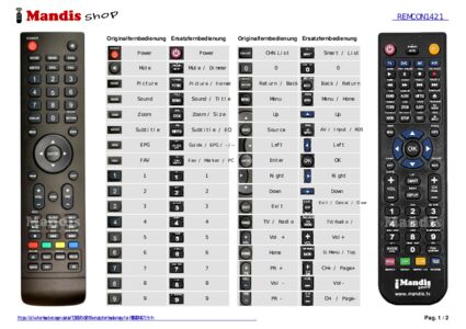Diese Fernbedienung ersetzt Ihre REMCON1421 in vollem Umfang und bietet alle Funktionen des Originals.