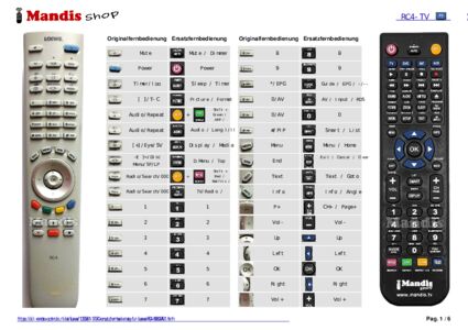Ein Dokument ist enthalten, um die Verwendung der neuen Fernbedienung zu erleichtern, indem es die Tastenbelegung zeigt.