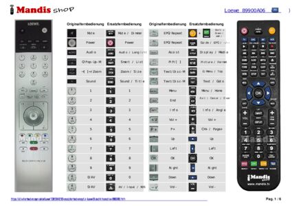 Ein Dokument ist enthalten, um die Verwendung der neuen Fernbedienung zu erleichtern, indem es die Tastenbelegung zeigt.