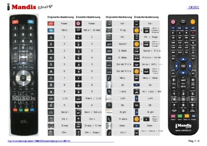 Ein Dokument ist enthalten, um die Verwendung der neuen Fernbedienung zu erleichtern, indem es die Tastenbelegung zeigt.