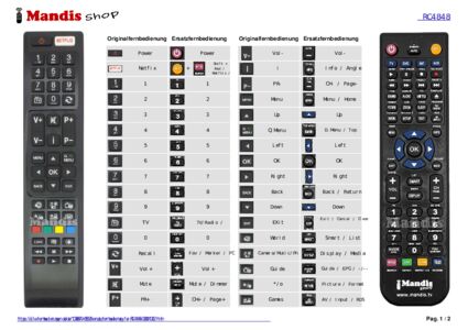 Ein Dokument ist enthalten, um die Verwendung der neuen Fernbedienung zu erleichtern, indem es die Tastenbelegung zeigt.