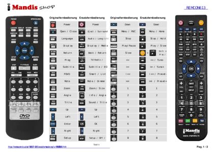 Ein Dokument ist enthalten, um die Verwendung der neuen Fernbedienung zu erleichtern, indem es die Tastenbelegung zeigt.