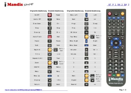 Ein Dokument ist enthalten, um die Verwendung der neuen Fernbedienung zu erleichtern, indem es die Tastenbelegung zeigt.